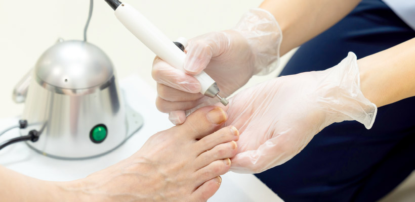 当院のフットケア外来では、「変形・肥厚した(爪が厚くなって爪切りでは切れない)足の爪切り・タコの処置・末梢神経障害の評価・足浴(足を洗う)・保湿剤塗布」を、内分泌科医師と相談しながら行っております。