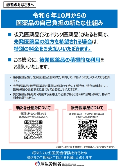 長期収載品の選定療養費のご案内